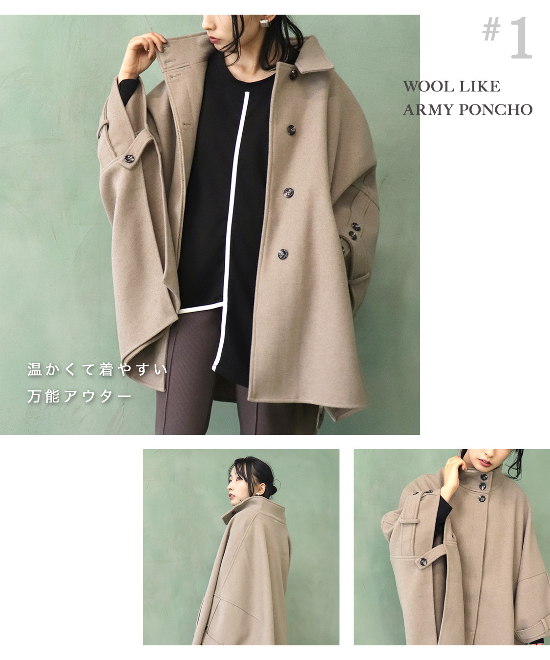 [BITTOKO]WOOL LIKE ARMY PONCHO ¥15,400 (tax in)