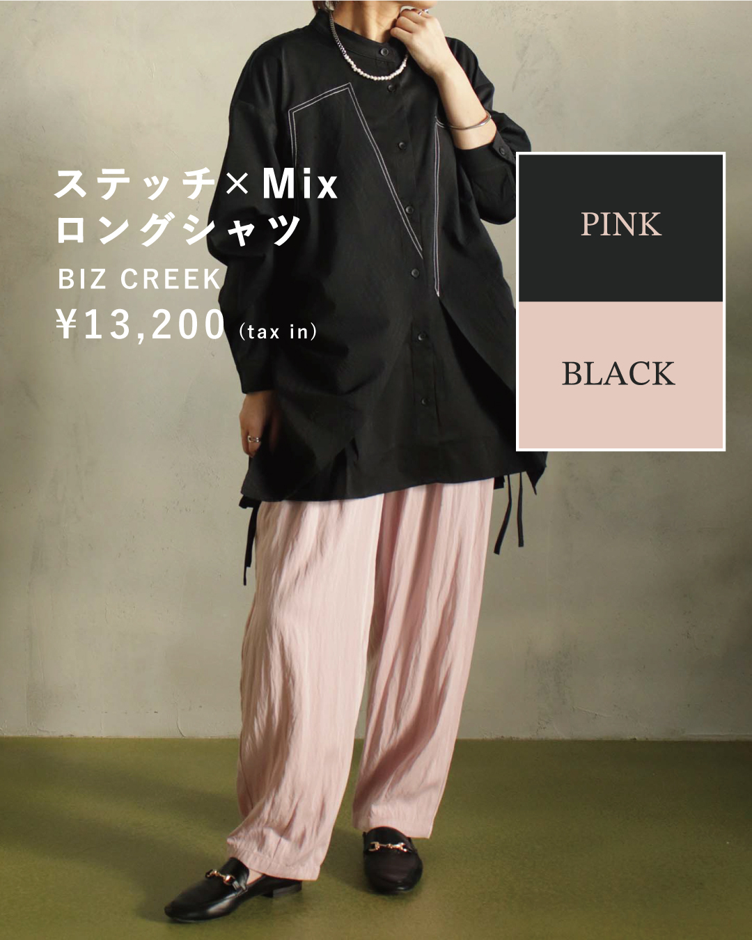 ブラック×ピンクの組み合わせで、暗いトーンになりがちなブラックコーデを