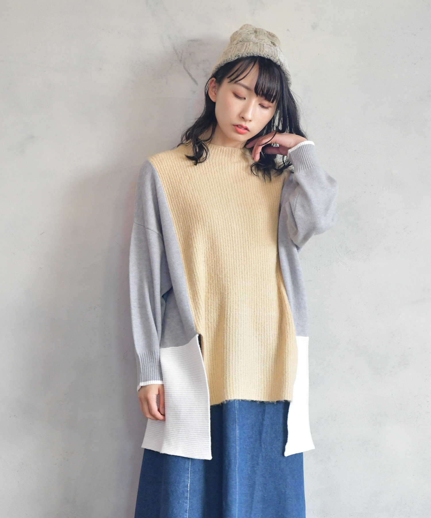 [BITTOKO] ケーブルレイヤー配色ニット