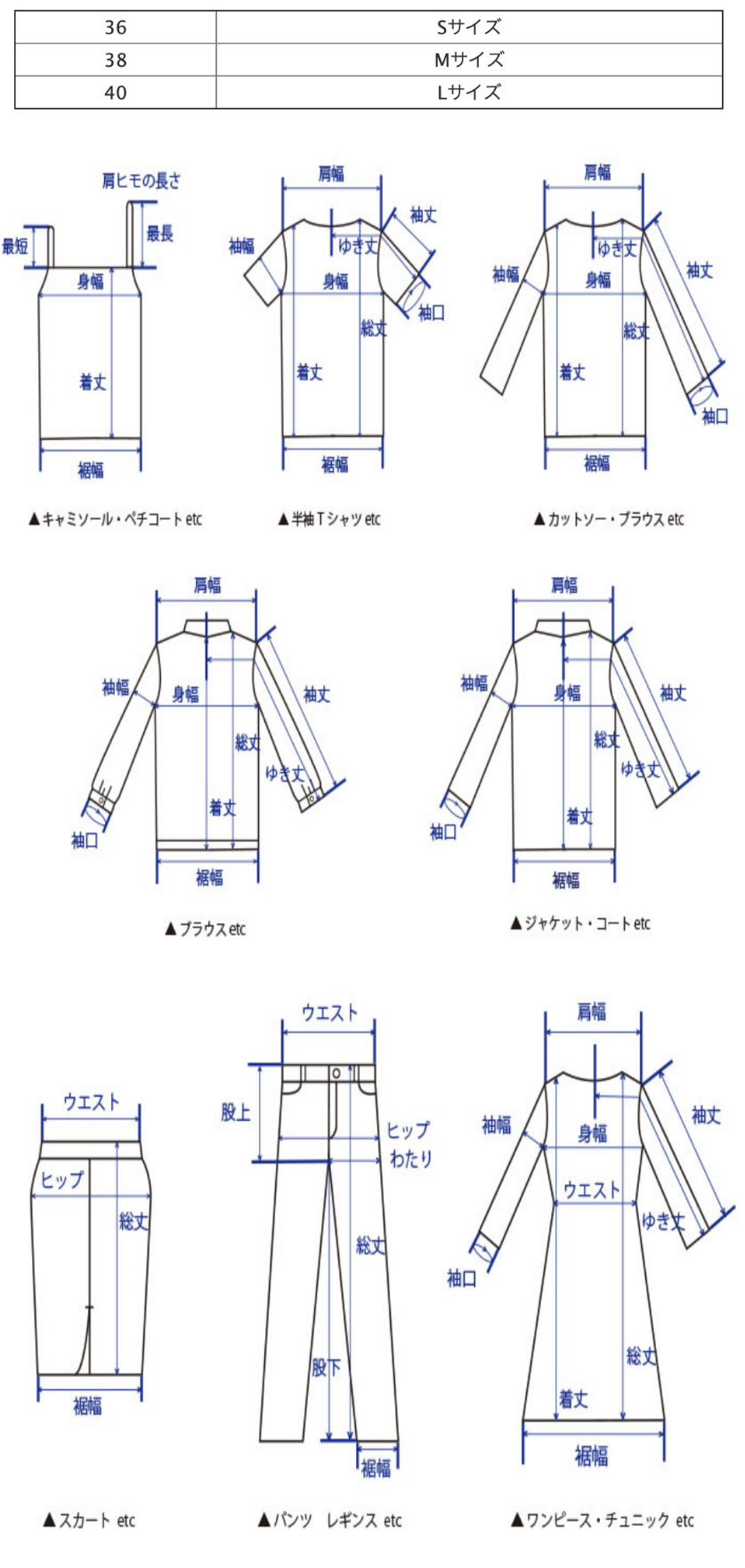 サイズガイド / Size Guide