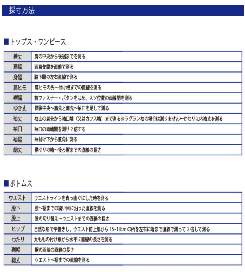 ※ストレッチ素材等は縮んだ状態で採寸していますので実際の表示サイズよりも伸びます。