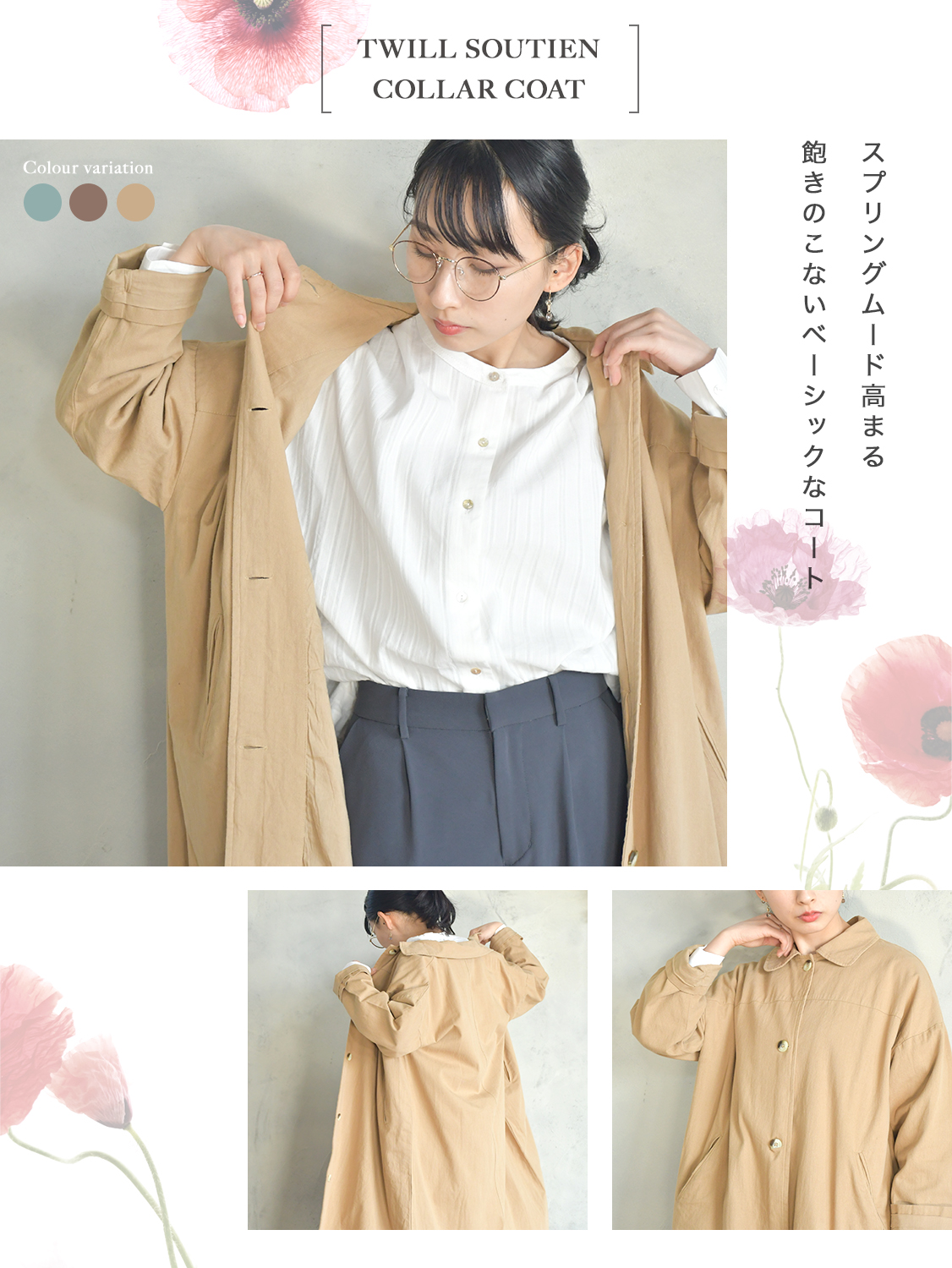 スプリングムード高まる、ベーシックなステンカラーコート。